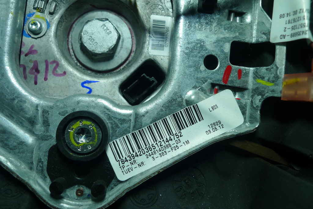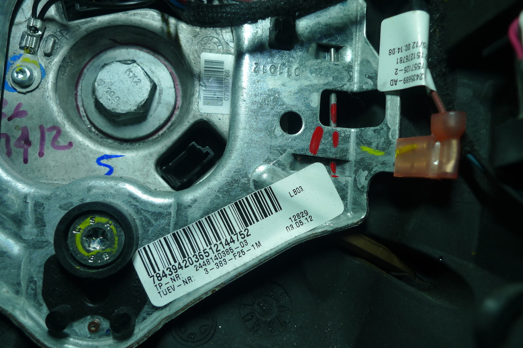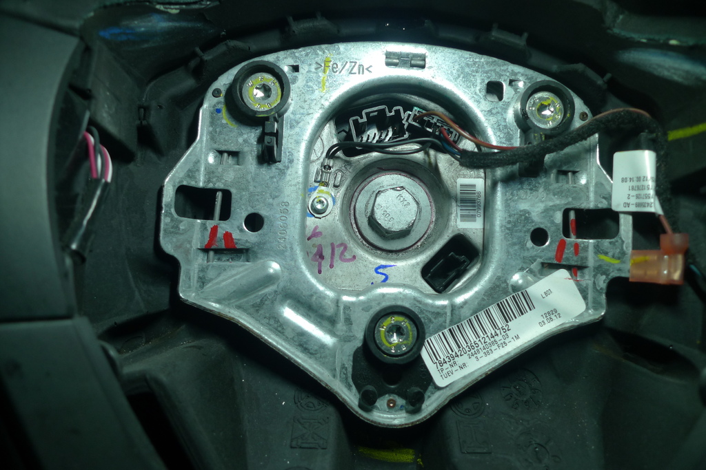 方向盤裝上...空氣囊固定彈簧夾..點紅漆推動..就可拆下.